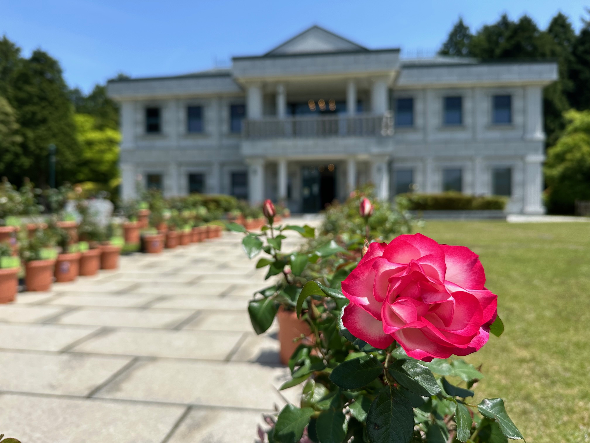 新緑に包まれ、木漏れ日が心地良い、初夏の恩賜箱根公園で美しいバラをお楽しみください✨