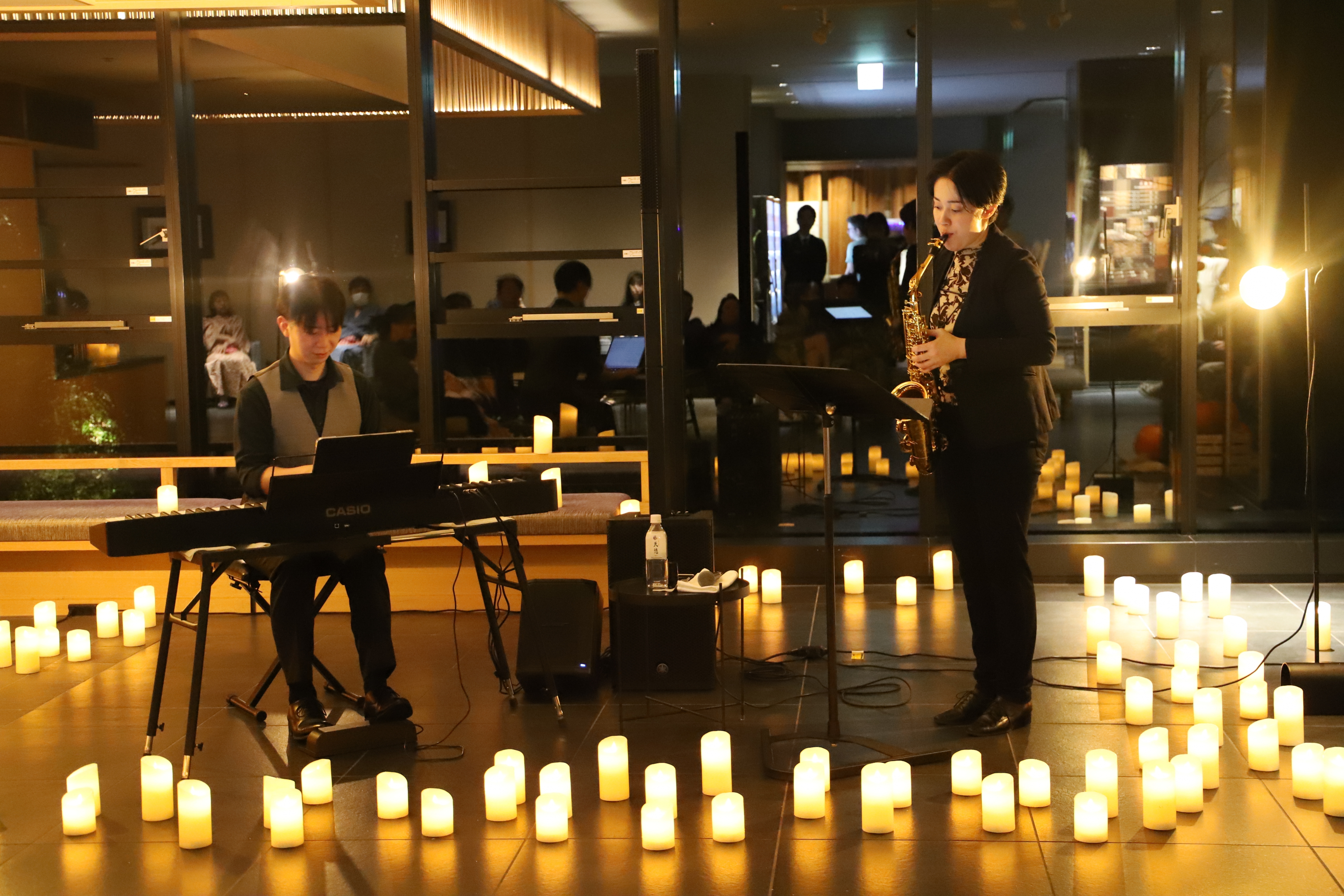 渓谷キャンドルが揺らめく幻想的な空間で、クリスマスソングやバラード、映画音楽など心に響く音色をお楽しみください。キャンドルのぬくもりが、特別な夜を演出します。