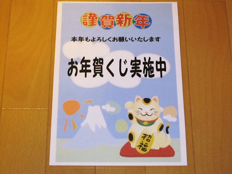 お食事のお客様1名につき1回、お年賀くじ(無料)サービスさせていただきます。
