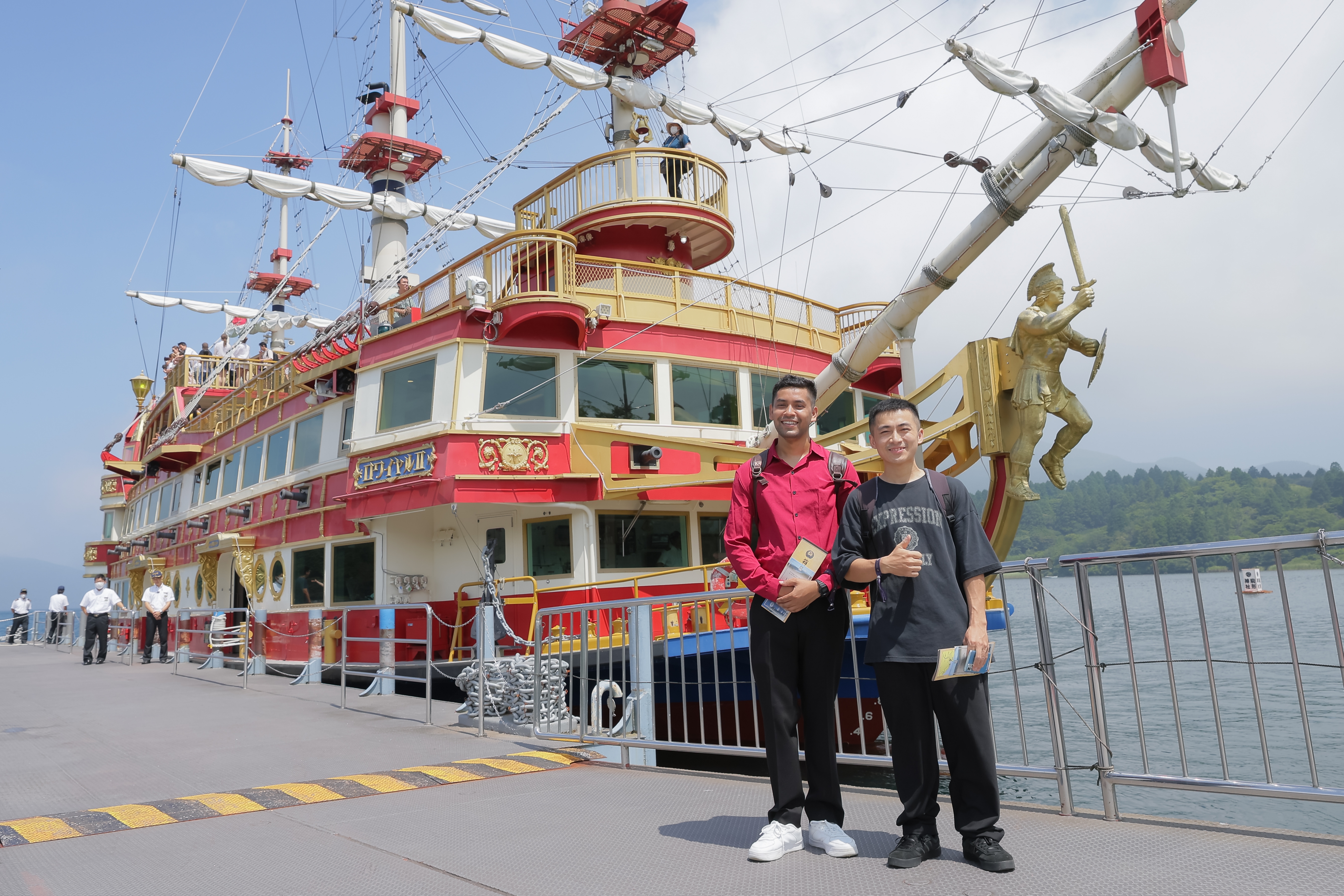 関所の見学を終え、箱根町港から「箱根海賊船」に乗船!ロワイヤルⅡの特別船室から眺める芦ノ湖の景色は、まさに絶景!