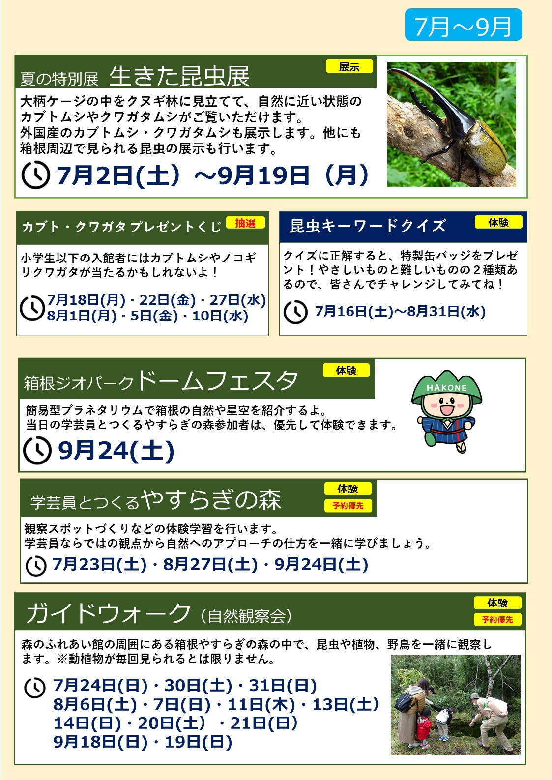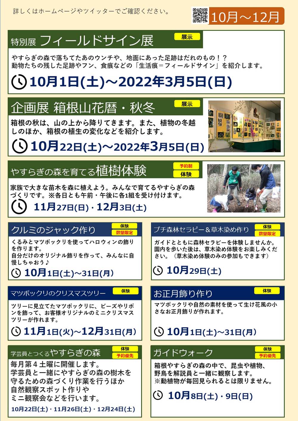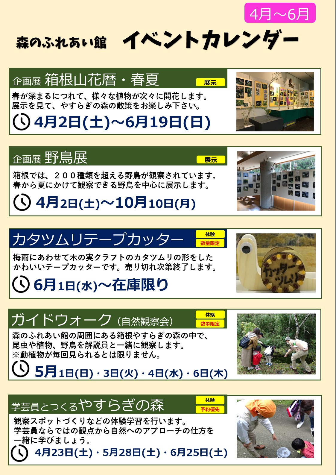 ●森のふれあい館や箱根やすらぎの森についての情報は、以下のサイトからもご覧いただけます。