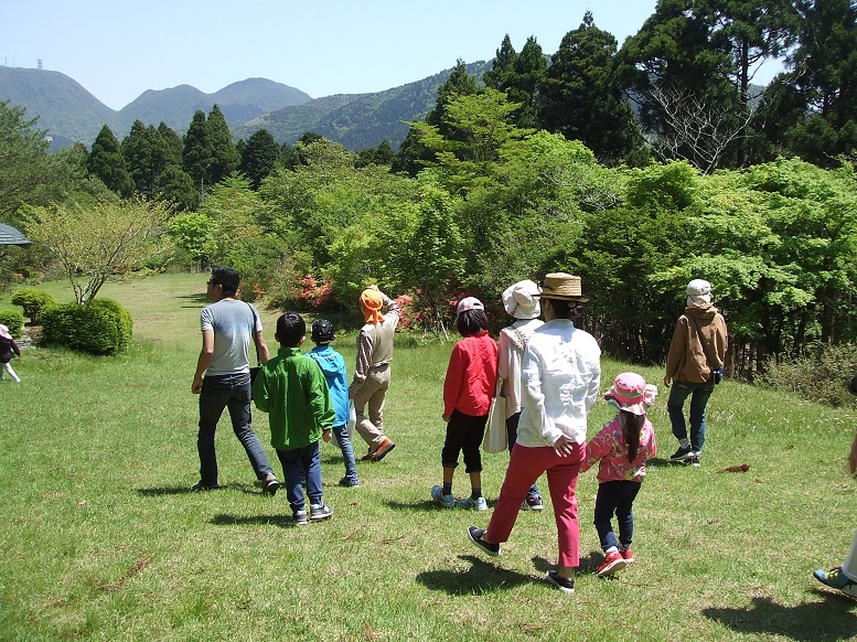 森のふれあい館の周囲にある箱根やすらぎの森の中で、昆虫や植物、野鳥を解説員と一緒に観察します。