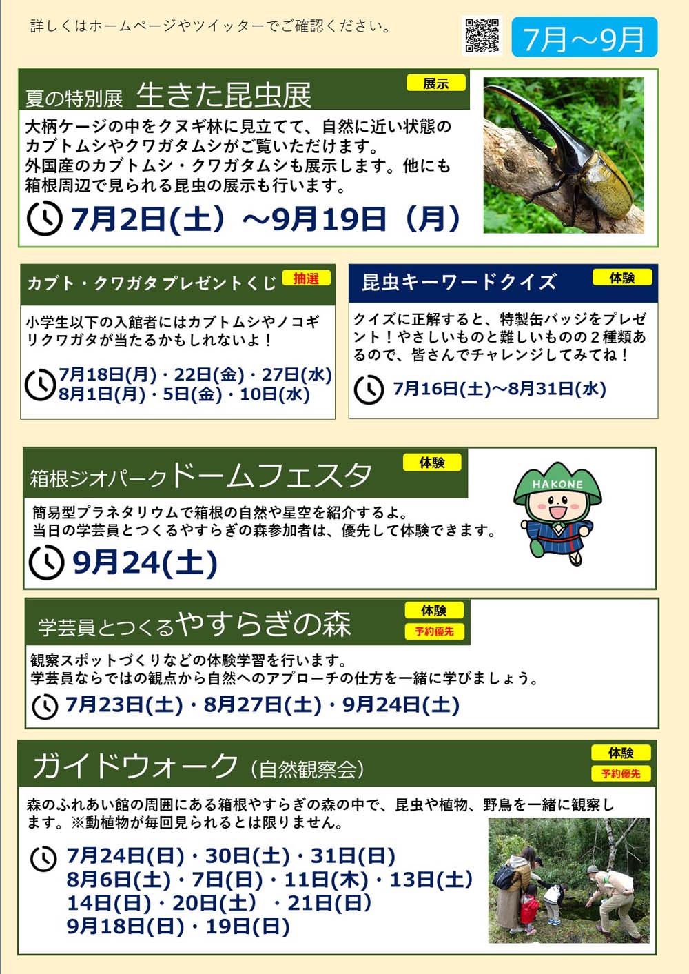 ●森のふれあい館や箱根やすらぎの森についての情報は、以下のサイトからもご覧いただけます。