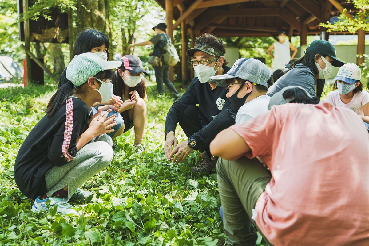 思い切り遊んだ後は、力を合わせてカレー作り。煮こみにかかったところで、好奇心旺盛な子どもたちは、虫採りに出かけたり、キジのつがいを発見したり……。そんな間にも、豪太さんは子どもたちと一緒に遊びながら、自然が秘める不思議について、さまざまな話を聞かせてくれた。