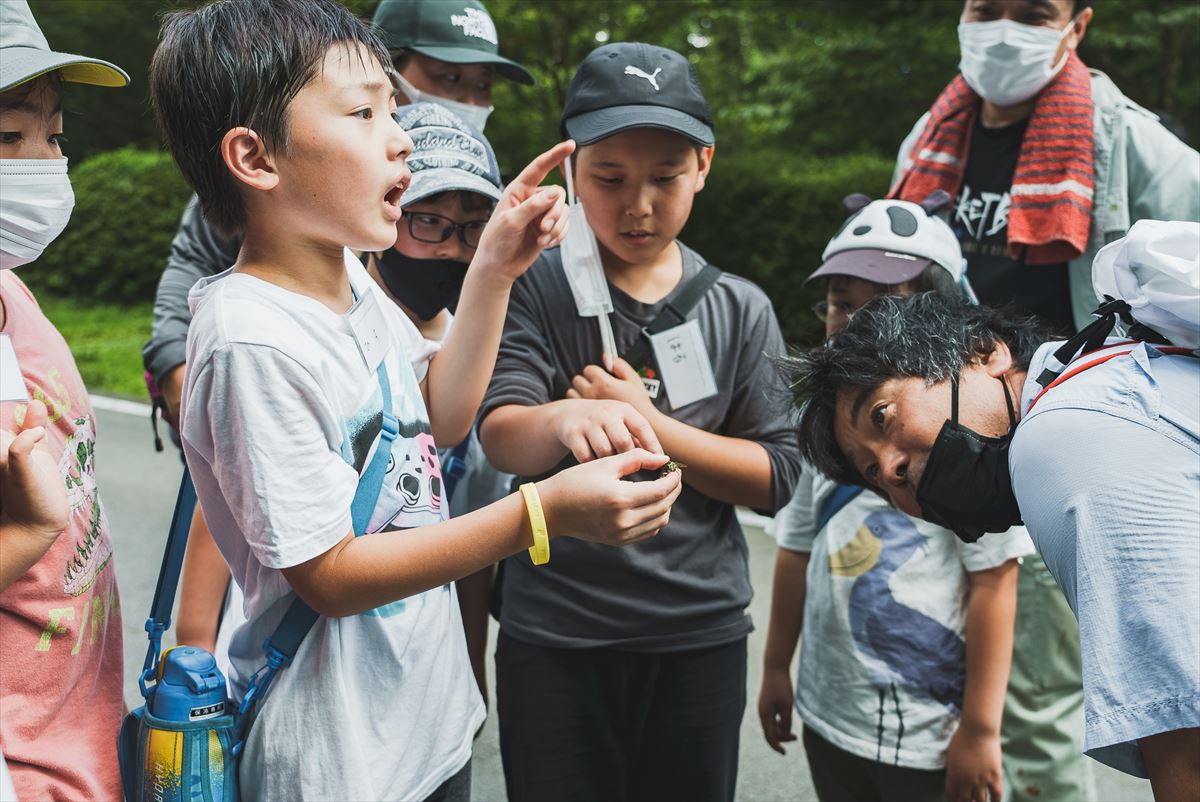 予定を繰り上げて登場してくれた三浦豪太さん。忍者のように身を潜めるヒグラシを見つけ、たちまちテンションアップ。天衣無縫な笑顔と空気感を子どもたちは敏感に察知、たちまちみんなの兄貴的存在に!