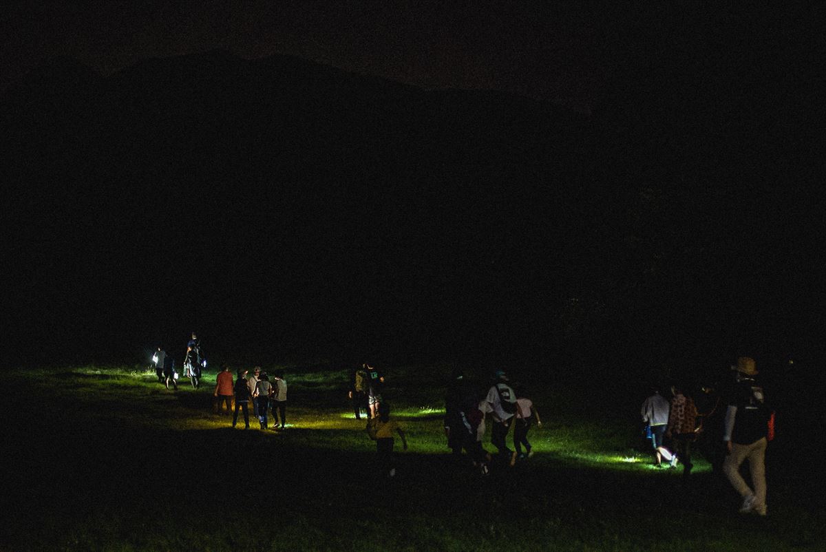 暗闇に負けじと歌い出したのは、女性キャンプリーダー。その調子外れの歌声に、夜の森は笑いに包まれた。
