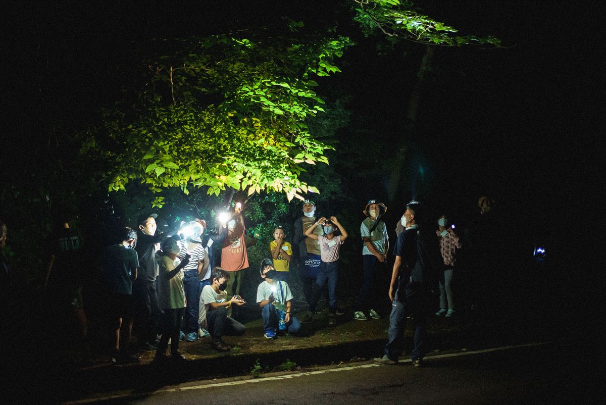 食後は夜の森を訪ねて歩いた。一見、暗くてなにも見えないようだけど、ライトを消して見上げると、そこには饒舌な夜の森が広がっていた。