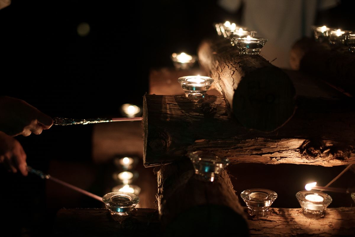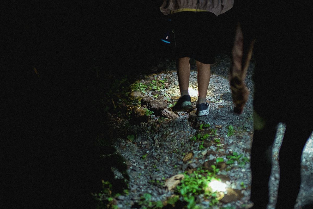 食後は、周囲の森の散策へ。昼間とはまるで表情の違う夜の森には、ちょっぴり怖くて、なんだか楽しい、不思議な世界が広がっている。