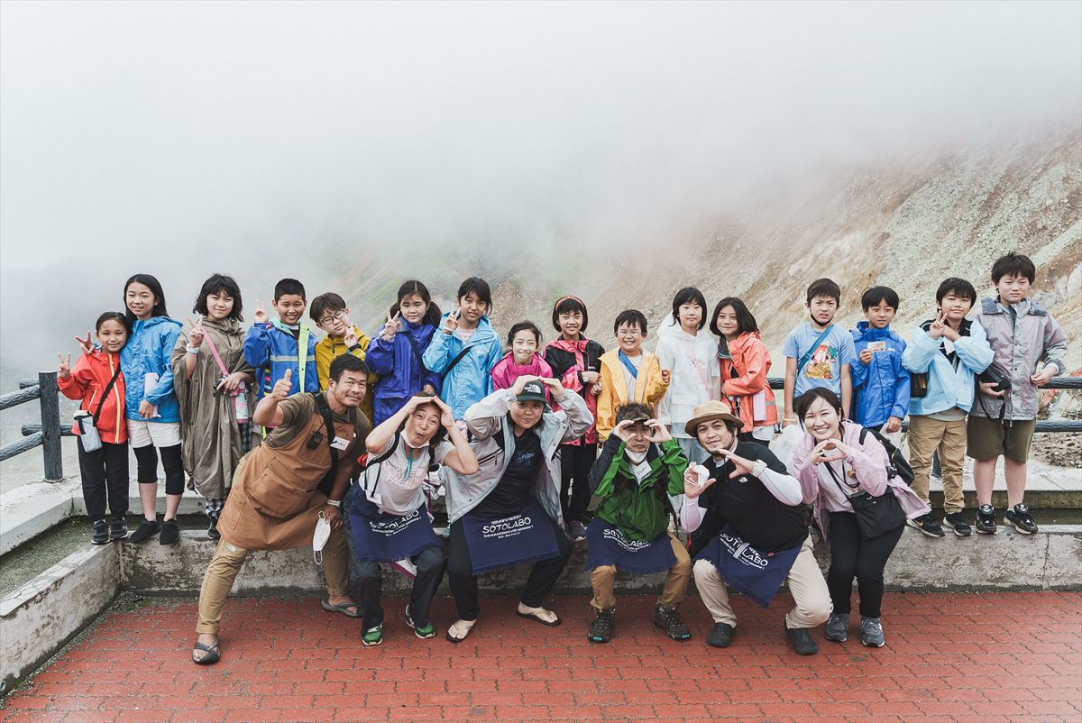 そんな加藤さんの言葉を思い出しながら、ロープウェイに乗って大涌谷へ。箱根ジオミュージアムを見学し、外に出ると雨が止んでいた。噴煙をバッグに写真を撮ろうとすると、すっかり仲良くなった子どもたちがじゃれ合い、わちゃわちゃの空気に。写真を2枚撮りる終えると、待っていたかのように大粒の雨が降り出した。