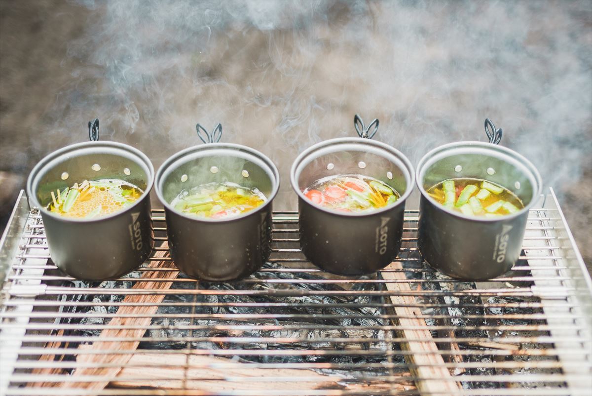 そうしてインゲンとプチトマトを加えたら、いよいよ焚き火にかける。見ていると、子どもたちは風向きを見ながら、火の粉が飛ばぬよう、煙くならないよう、自身で考えながら、風上側から慎重に鍋を並べていった。