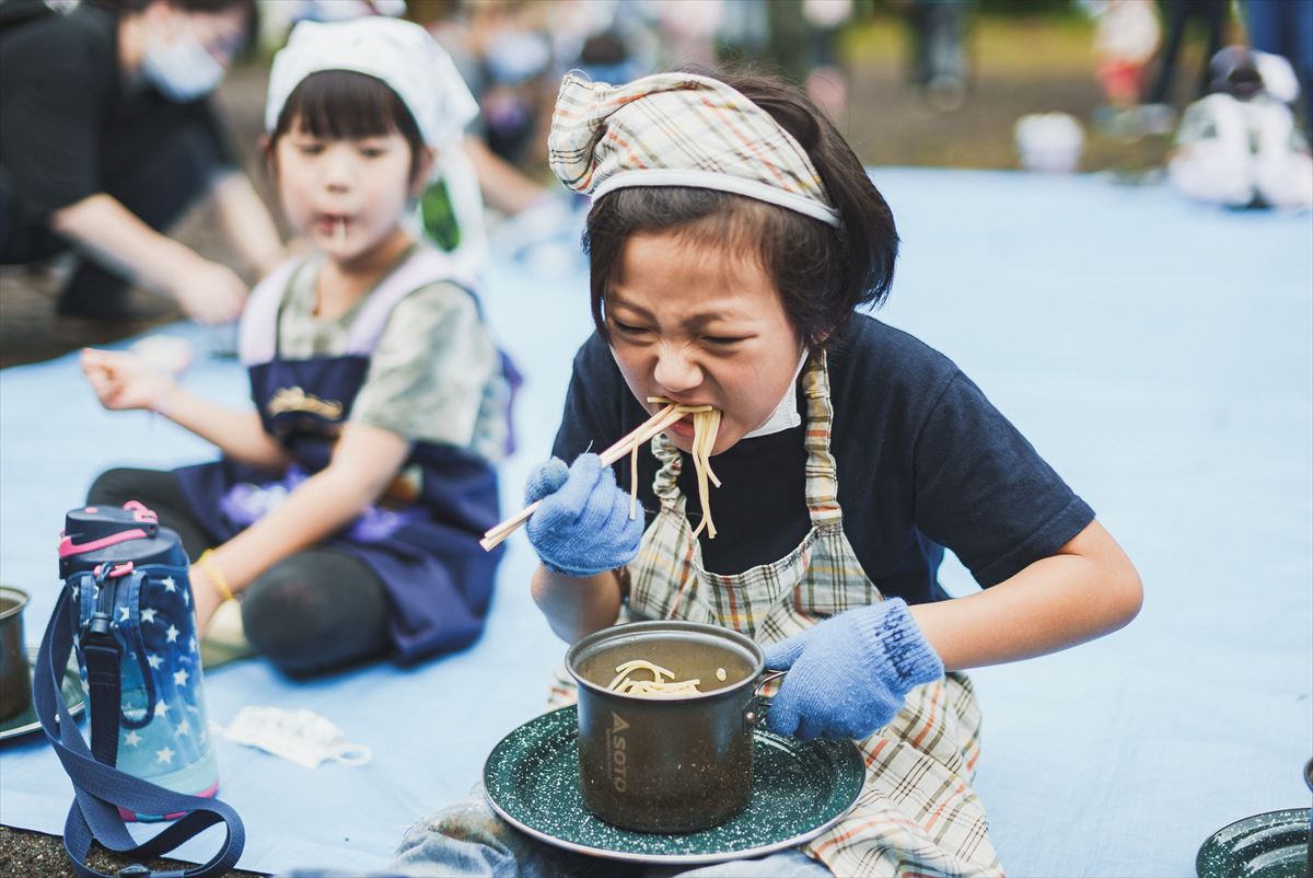 やがて、煙のまわりあわい においしそうな香りが漂いはじめる。ひと口ちゅるっと食べてみて、パスタがほどよい硬さに茹だっていたら、塩をひと振りしてできあがり。熱い熱いと言いながら、子どもたちは勢いよく食べはじめる。そんな姿を見ながら、お母さんのひとりが感慨深そうに声をあげた。