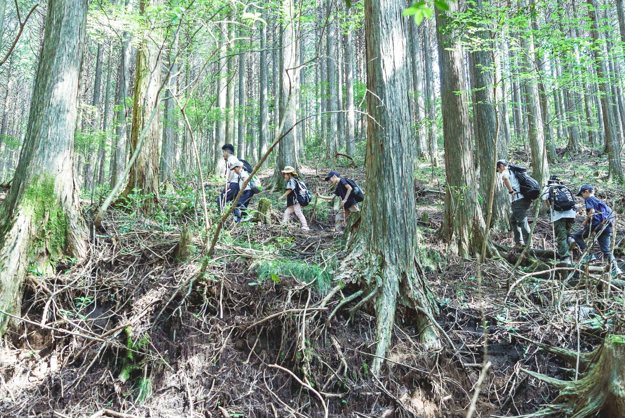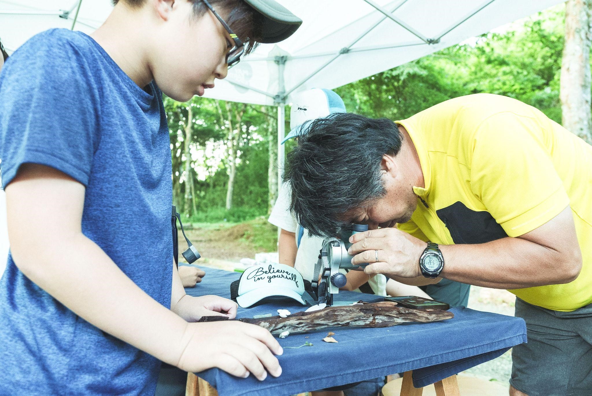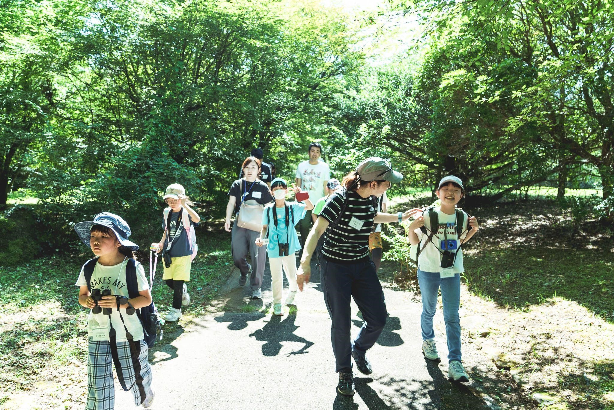 テントを張り終えると、ネイチャーガイドの築紫宗太さんの案内で、近隣の箱根ビジターセンターへお散歩。日が傾いた午後の森は、ヒグラシの合唱がシャワーのように降り注いでいる。そんななか、築紫さんはある鳥の歌声を聞きつけた。