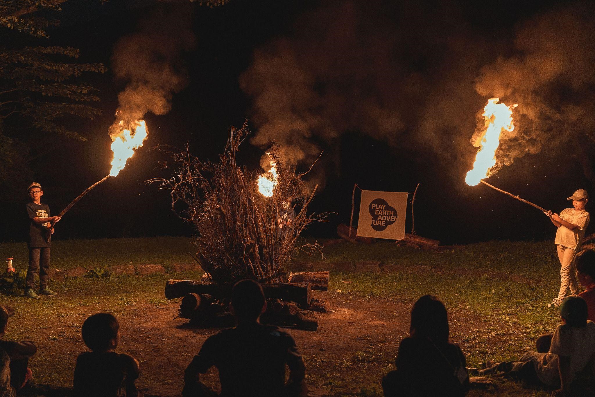 たっぷりごはん食べた後のお楽しみは、キャンプファイヤー!