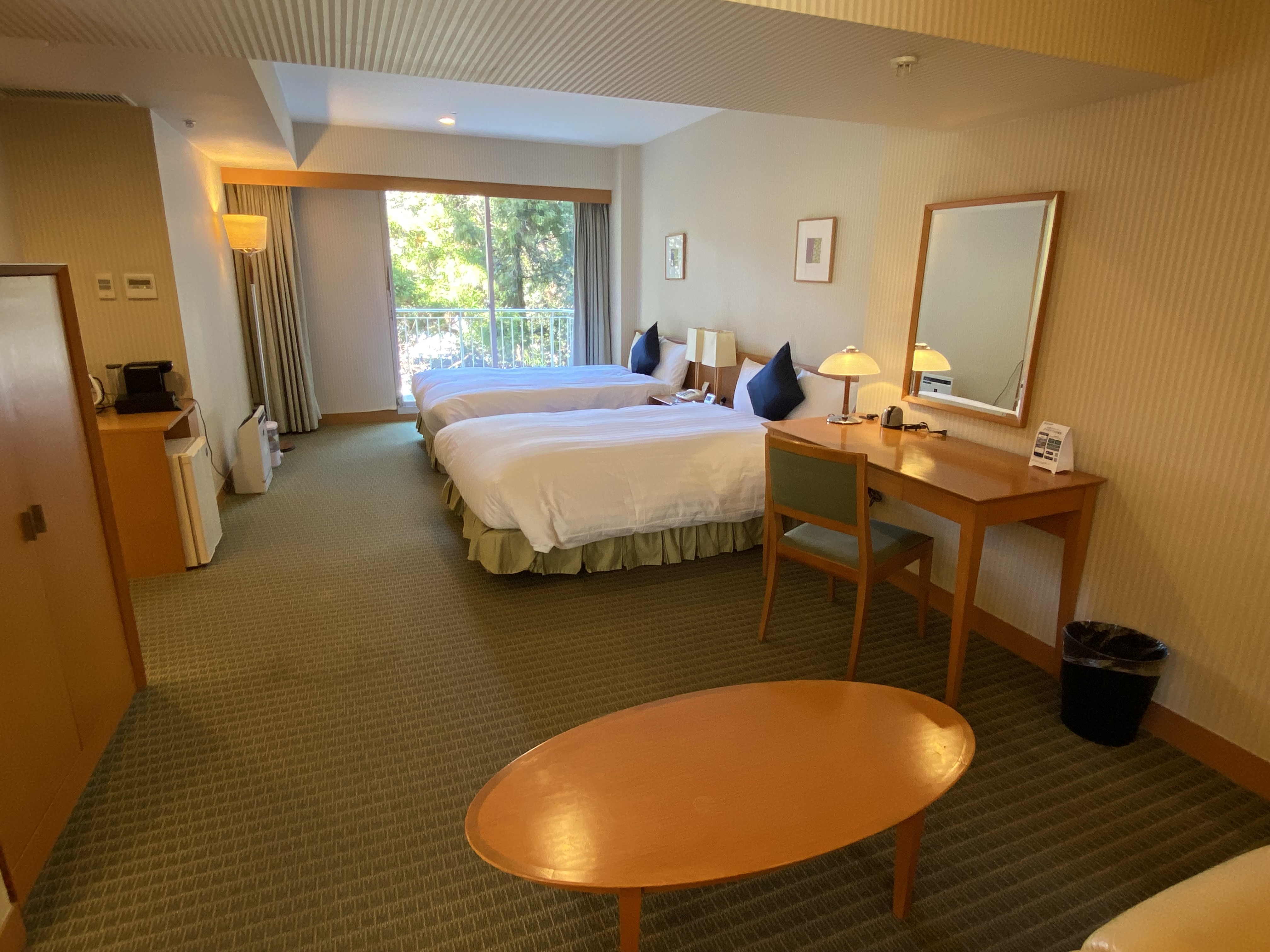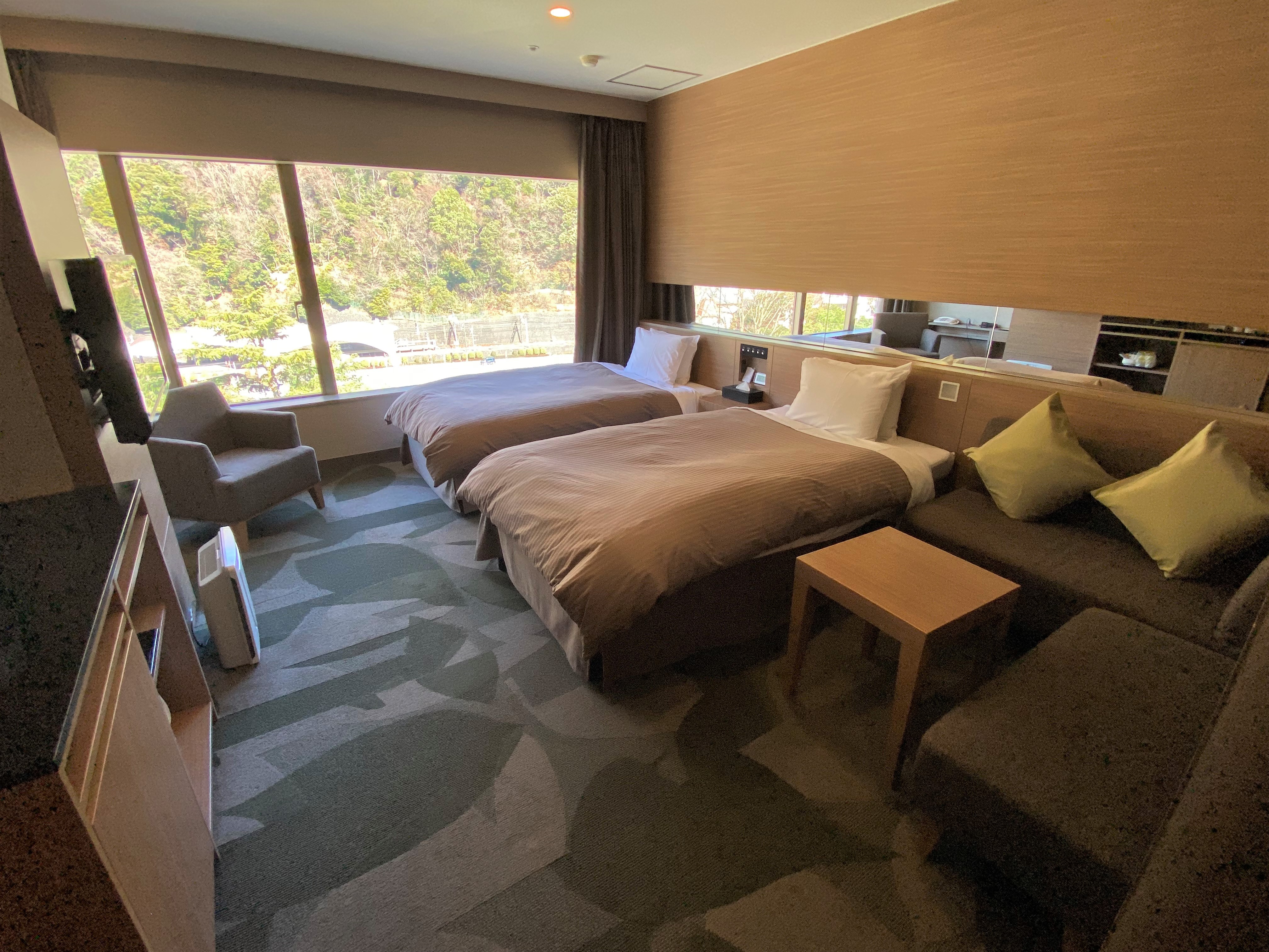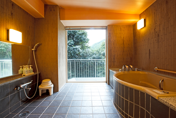 本館401号室はホテル内で唯一、温泉を引いている客室