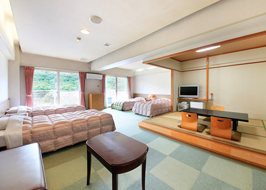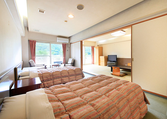 ベッドルームの洋室と畳の和室を設置した、人気の和洋室タイプのお部屋。チェックイン後、お疲れの時はいつでもご自由にお休みになれます。