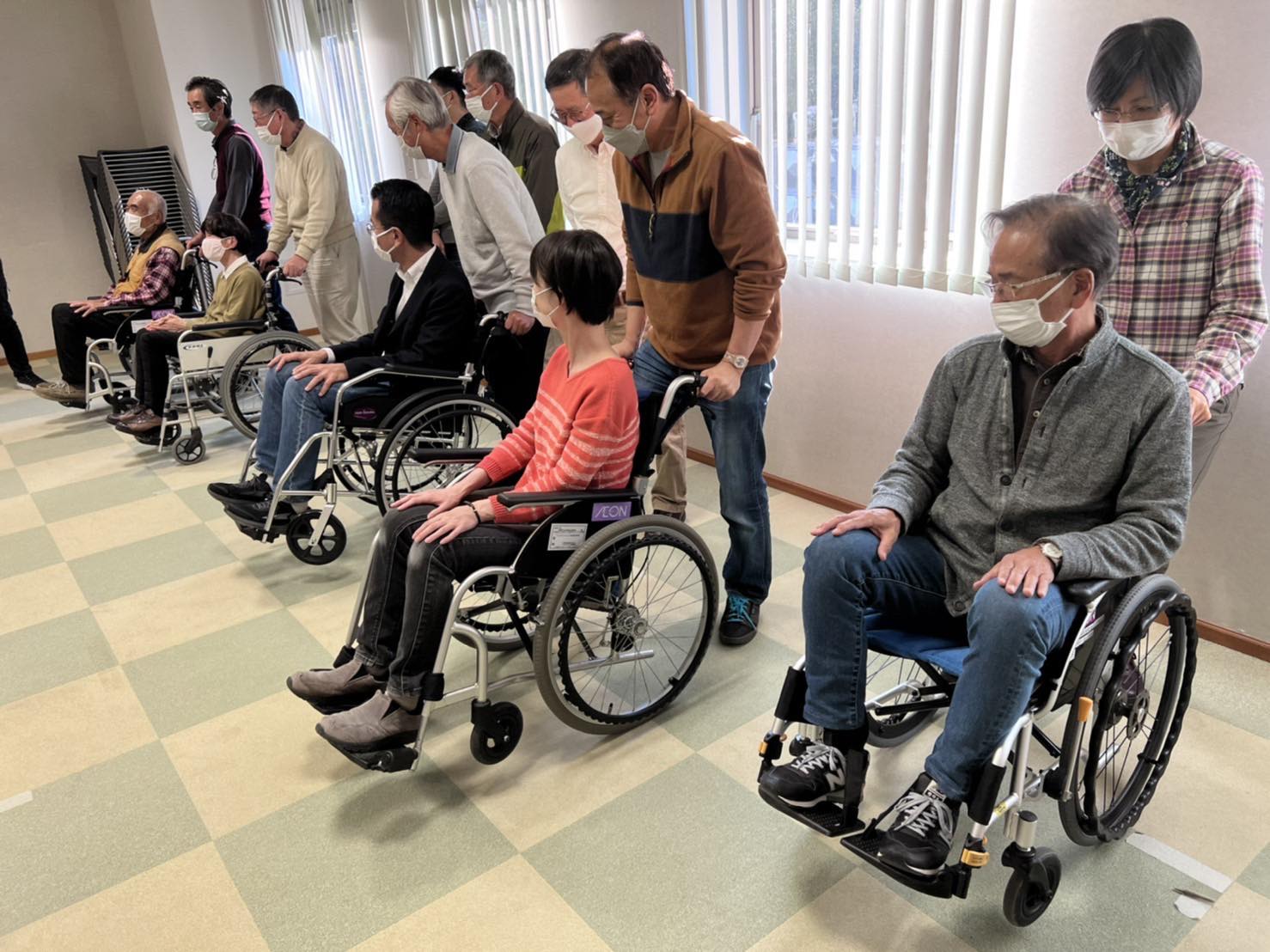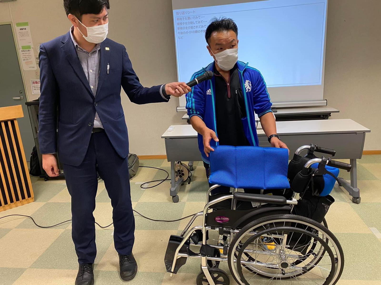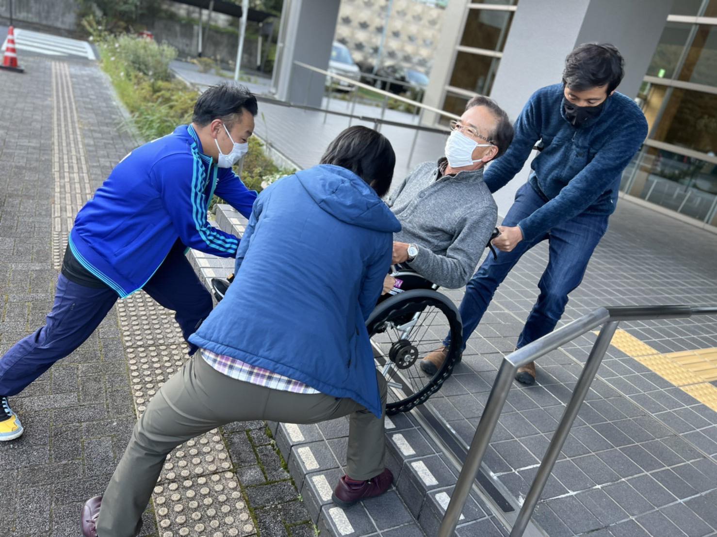 車いすに乗った状態で介助される時の怖さを実際に体験しました。