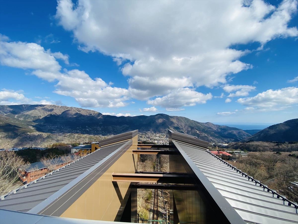 箱根ロープウェイと箱根登山ケーブルカーとの中継地点にあたる早雲山駅。駅2階のcuーmo箱根の展望テラスからは、強羅の街並みや箱根外輪山のほか、晴天時は相模湾や三浦半島を望むことができます。また時季やタイミング、天候によっては幻想的な雲海を見る事が出来ます。