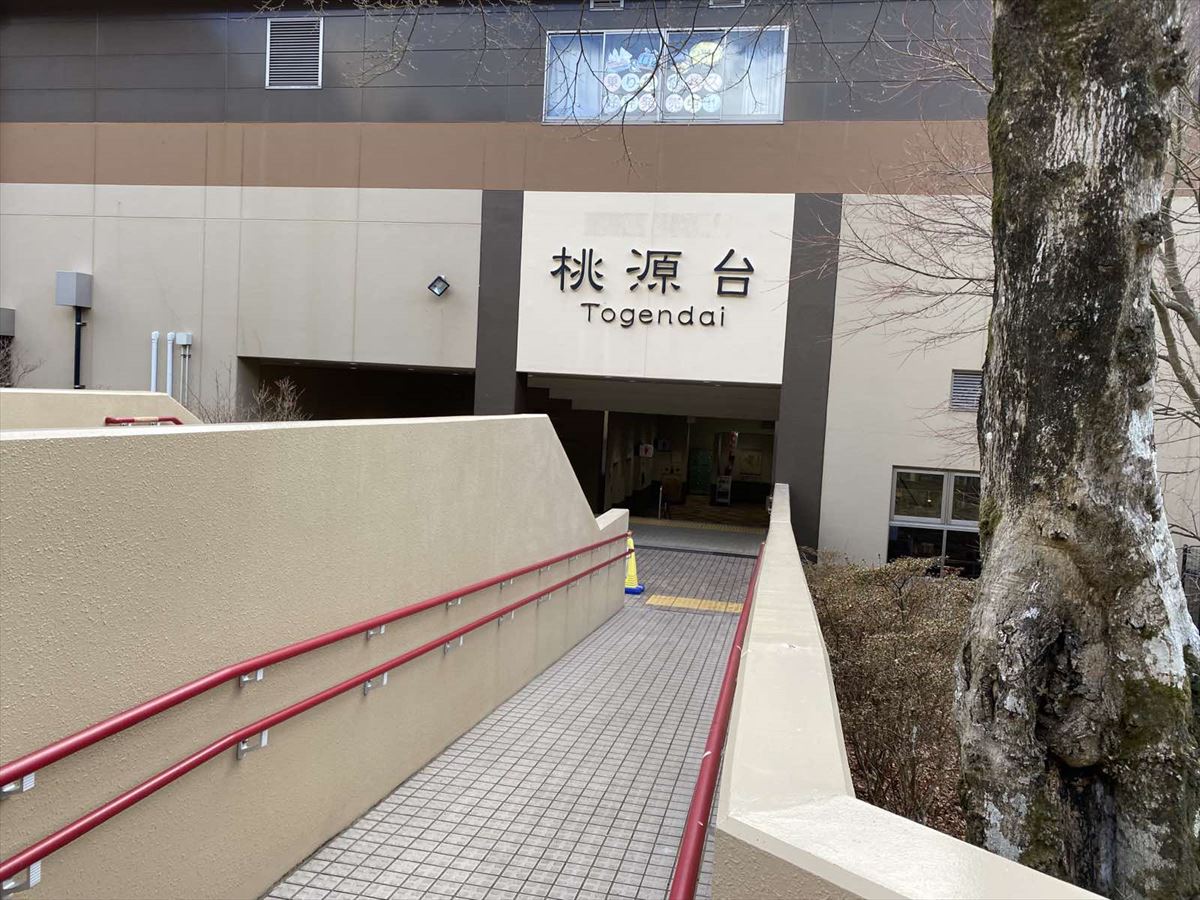 桃源台駅構内には車いすをご利用の方が利用できるトイレが2か所御座います。駅構内の売店やレストランは車いすご利用の方の利用も可能で御座います。駅周辺は多少の傾斜があり介助が必要な箇所も御座います。