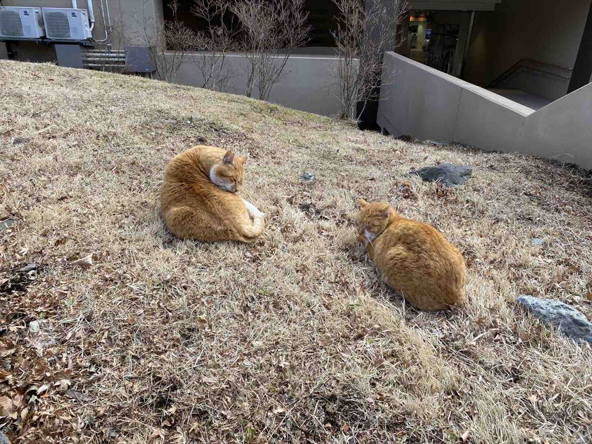 駐車場周辺は猫が沢山!ひなたぼっこしています。