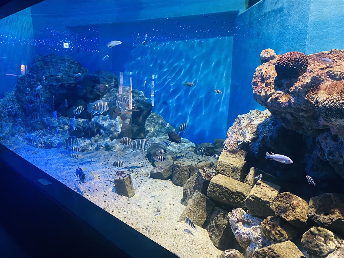 森の中にある水族館!世界中の魚たちが大集合しています。海水館にある魚類大水槽ではダイバーがお魚たちに餌をあげます。かわいいお食事姿が大人気!