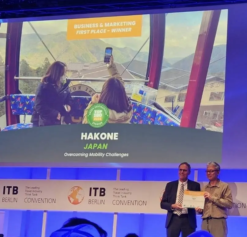 観光の国際認証団体グリーン・デスティネーションズ(本部:オランダ)が実施する「Green Destinations Top 100 ストーリーズ 2023(2023年世界の持続可能な観光地TOP100選)」のファイナリスト審査にて、神奈川県箱根町が「ビジネスとマーケティング部門」1位に選ばれました。授賞式はベルリンで開かれた世界的な旅行博「ITB Berlin 2024」内で3月6日に行われました。