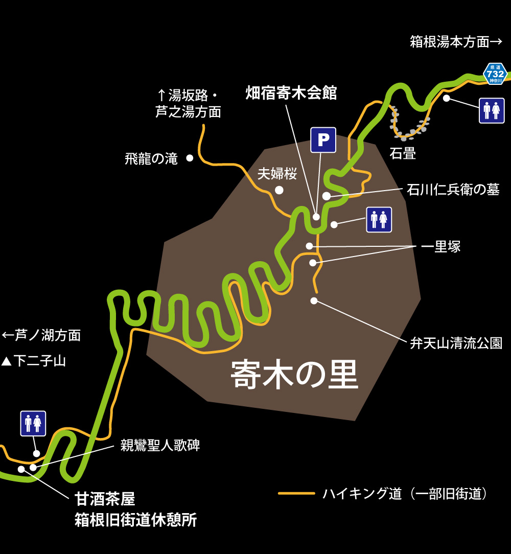 箱根町の南部に位置する「畑宿」。戦国時代、箱根越えのための中間地点として旅人たちが行き来していました。 畑宿近辺に今も残る石畳は、箱根越えのために幕府からの命を受けて村人がつくりあげたものです。